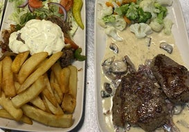 Mør biff tilberedt etter dine ønsker, servert med klassisk tilbehør.